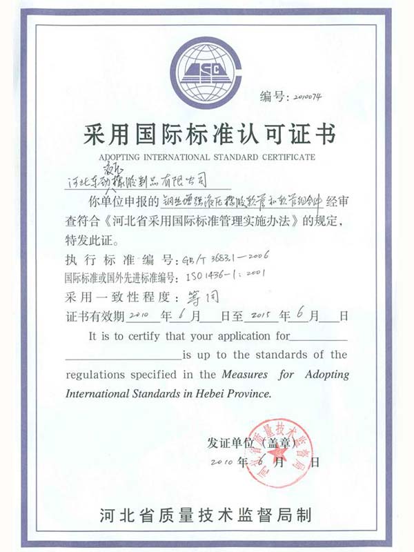 • 2015-11-12本公司獲得了“中國石油天然氣集團物資供應商準入證”